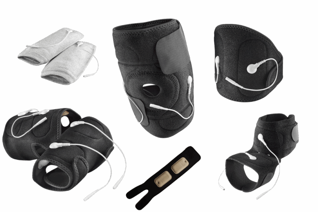 These allow for hands-free treatment, enabling the practitioner to treat one area with microcurrent while doing other treatments elsewhere on the body. Great for accomplishing a few things at once.